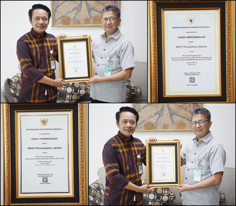 rspersahabatan.co.id, Jakarta. Rumah Sakit Umum Pusat Persahabatan meraih penghargaan dari Kementerian Kesehatan Tahun 2025 diantaranya:1. Penghargaan Kepatuhan Interaksi Pelayanan Publik Tahun 2025 dengan predikat sangat baik. 2. Penghargaan Pemantauan dan Evaluasi...
