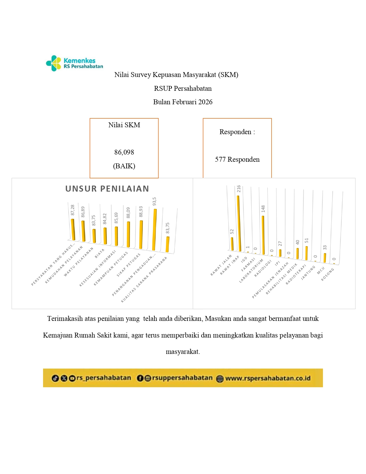 Rumah Sakit Umum Pusat Persahabatan, turut partisipasi dalam kegiatan Hari Kanker Anak Internasional (HKAI), Minggu 15 Februari 2026, dengan menyediakan Ambulance beserta Tenaga Kesehatan selama kegiatan HKAI berlangsung. Kegiatan ini...