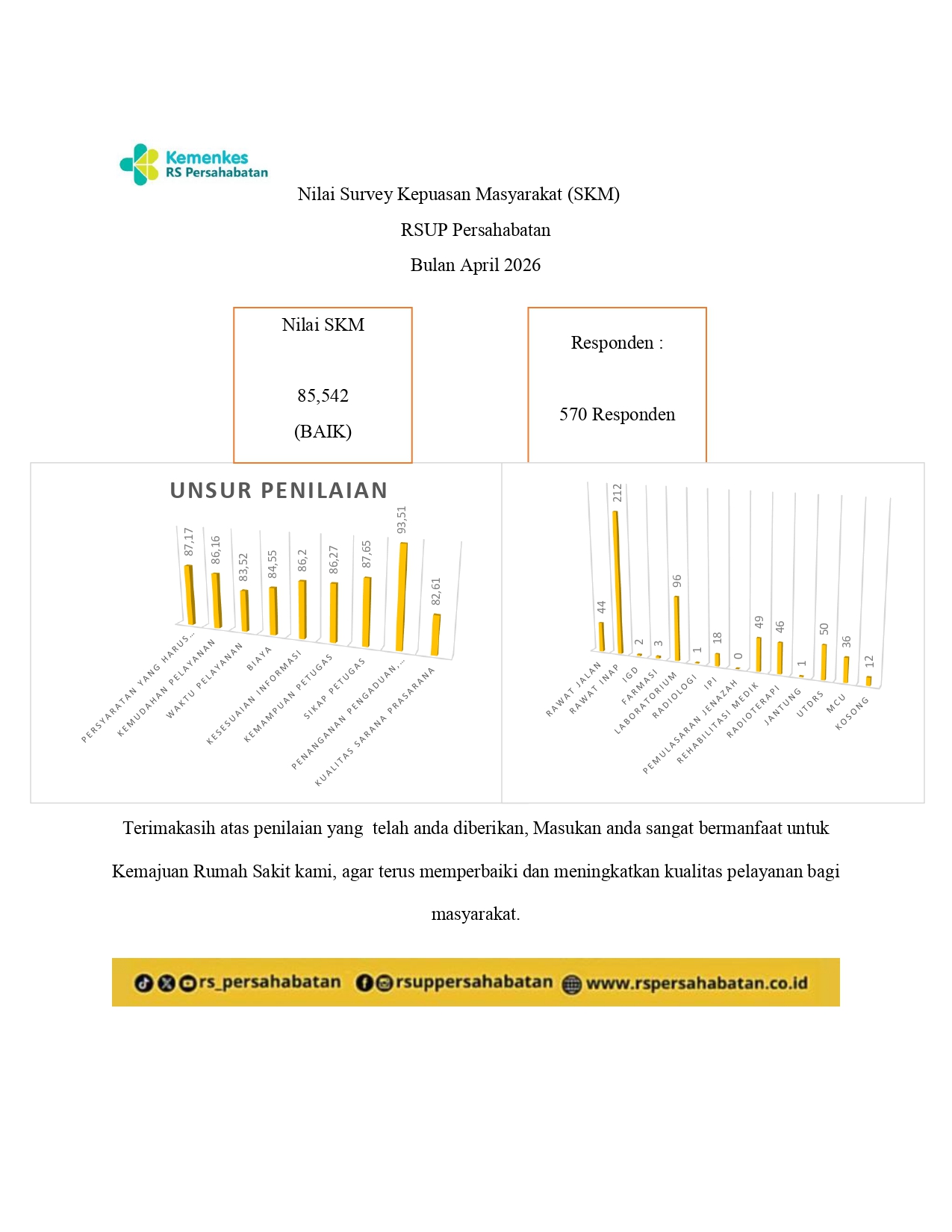 Kami terus melakukan upaya peningkatan pelayanan pada pasien baik pada pelayanan Rawat Jalan, Rawat Inap, IGD maupun pelayanan kepada keluarga pasien saat mengunjungi rumah sakit. menjadi strategi RSUP Persahabatan dalam mewujudkann rumah sakit pilihan masyarakat dan berkelas dunia.