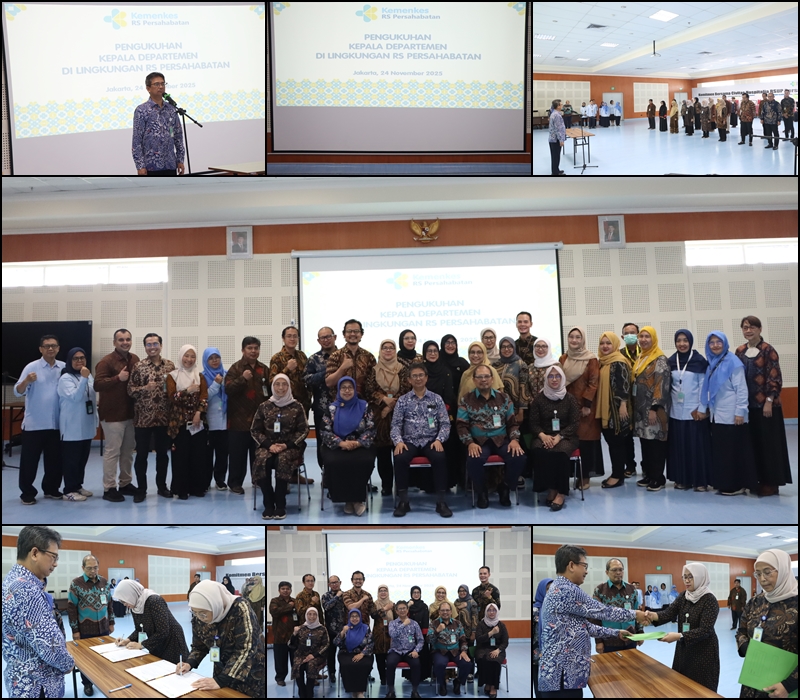 rspersahabatan.co.id, Jakarta. Bertempat di Auditorium Prof Dr Rasmin Rasjid Lantai 8 Rumah Sakit Umum Pusat PersahabatanMenyelenggarakan Pengukuhan Kepala Departemen di Lingkungan RSUP Persahabatan Tahun 2025, Senin (24/11/2025). Acara pengukuhan ini di pimpin oleh Direktur Utama RS Persahabatan Prof. Dr. dr. Agus Dwi Susanto, Sp. P (K), MHPM, FISR, FAPSR, yang dihadiri oleh Jajaran Direksi dan tamu undangan. Dalam sambutannya Prof. Agus menyampaikan, "Terminologi KSM sudah tidak ada lagi di Kementerian Kesehatan dan menjadi Departemen. Departemen ini dalam aspek pelayanan, saya mengucapkan terima kasih kepada dokter spesialis dan dokter umum yang tergabung dalam kesepakatan Departemen ini. Kepada seluruh Kepala KSM yang sebelumnya mempunyai peran sangat besar sekali, atas nama Direksi dan Civitas Hospitalia mengucapkan terima kasih kontribusi selama ini. Kepada pejabat yang baru dilantik dengan nama Departemen, ini adalah sebuah tantangan karena banyak hal baru di dalam satu Departemen tidak hanya ada satu dokter spesialis ada beberapa dokter spesialis yang tergabung dalam Departemen Anda. Berikut nama...