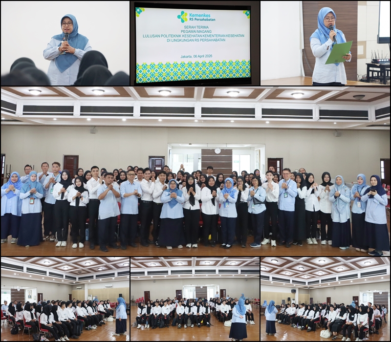 rspersahabatan.co.id,Jakarta. Rumah Sakit Umum Pusat Persahabatan menyelenggarakan kegiatan Penerimaan Pegawai Magang Pendayagunaan Lulusan Politeknik Kesehatan Kementerian Kesehatan (Poltekkes Kemenkes). Kegiatan ini berlangsung di Auditorium Soepandi Moekajin, Sp.P, Gedung Griya Puspa lantai 2, pada Senin (6/4/2026).Acara dibuka oleh Direktur Sumber Daya Manusia, Pendidikan, dan Penelitian, Emmy Amalia, SKM, MPH. Pada kesempatan tersebut, sebanyak 53 lulusan Poltekkes Kemenkes resmi diterima sebagai pegawai magang di RSUP Persahabatan.Dalam sambutannya, Direktur SDM, Pendidikan, dan Penelitian menyampaikan bahwa RSUP Persahabatan membutuhkan berbagai lulusan dari Poltekkes Kemenkes sesuai dengan kebutuhan pelayanan rumah sakit. Beliau juga berpesan agar para peserta magang dapat memanfaatkan kesempatan ini dengan sebaik-baiknya.“Manfaatkan waktu magang ini untuk belajar dan menunjukkan kinerja terbaik. Jika kinerja baik, ke depan akan terbuka peluang yang lebih baik. Awal yang baik hendaknya dijaga dengan sikap dan perilaku profesional sejak mulai bekerja,” ujarnya.Beliau juga mengucapkan terima kasih kepada para peserta yang telah memilih RSUP Persahabatan sebagai tempat memulai karier sekaligus...