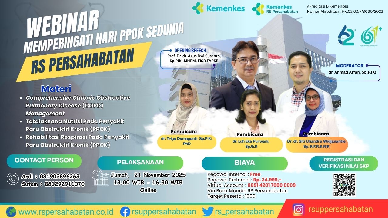 Lihat SelengkapnyaWEBINAR MEMPERINGATI HARI PPOK SEDUNIA TAHUN 2025 DI RSUP PERSAHABATAN